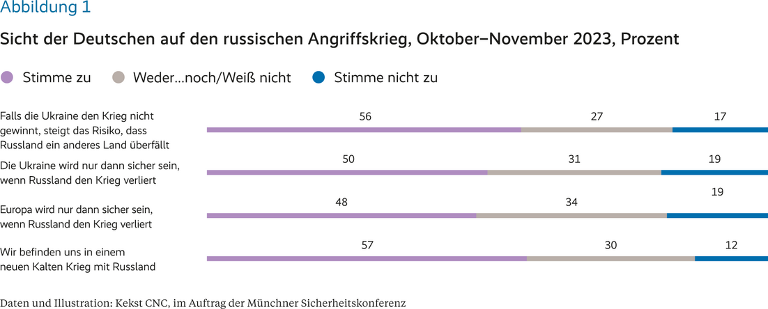 Leonard Schütte, „Wer A sagt, muss auch B sagen: Die Widersprüchlichkeiten der Unterstützung in der deutschen Bevölkerung für die Ukraine“, München: Münchner Sicherheitskonferenz, Munich Security Analysis 1, Februar 2024, https://doi.org/10.47342/GNMB4087.